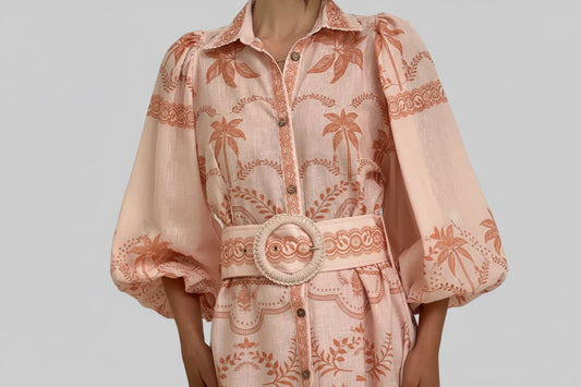 Ladies Printed Balloon Sleeve Maxi Shirt Dress