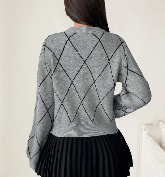 Diamond Pattern Bow Detail Sweater