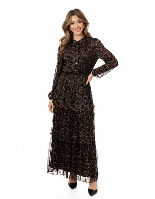 Black And Red Mesh Layered Dress
