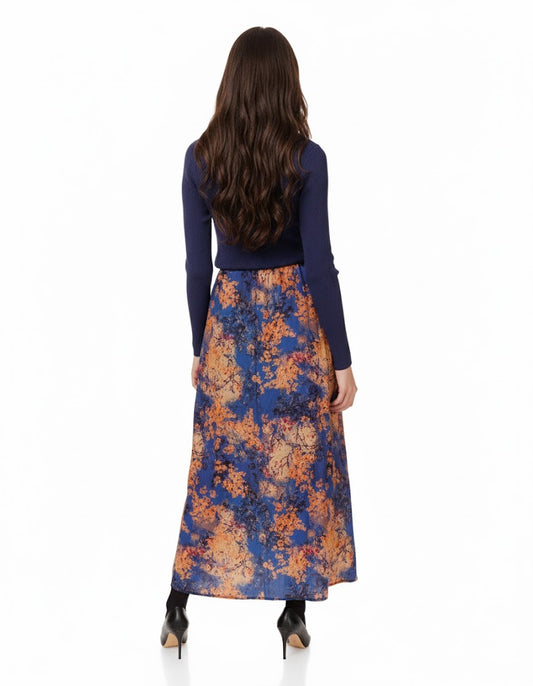 Orange And Blue Silk Jumper With Blue Knit Overlay