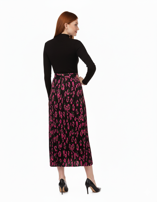 Blue With Magenta Print Pleated Dress
