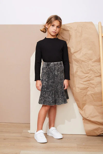 Ladies Acid Wash Maxi Skirt 8535 (2 colors)
