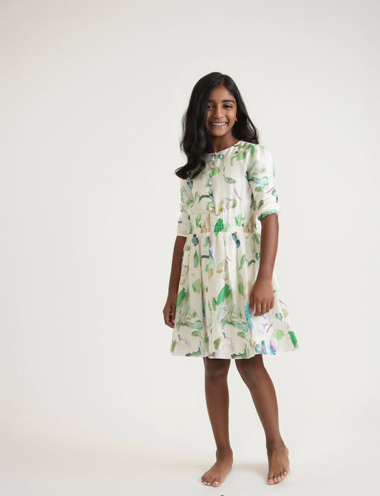 שמלת מותניים עם הדפס מוברש בצבע ירוק Tween (לפני גרסת הברך)