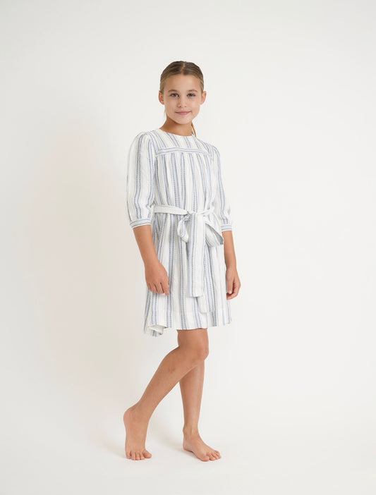 שמלת עניבה מפוספסת לבנים וכחולים של טווין (מעבר לגרסה באורך הברך)