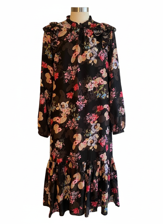 שמלה פרחונית עם פרטי צוואר שניים (מעבר לגרסת הברך)