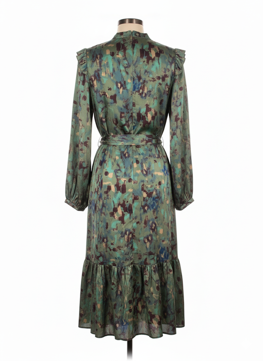 שמלת צבעי מים בצבעי מים ירוקים של טווין עם פירוט פרווה