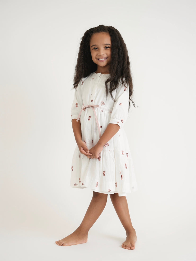 שמלת שרוך רקומה בצבע לבן וורוד פרחוני (מעבר לגרסה באורך הברך)