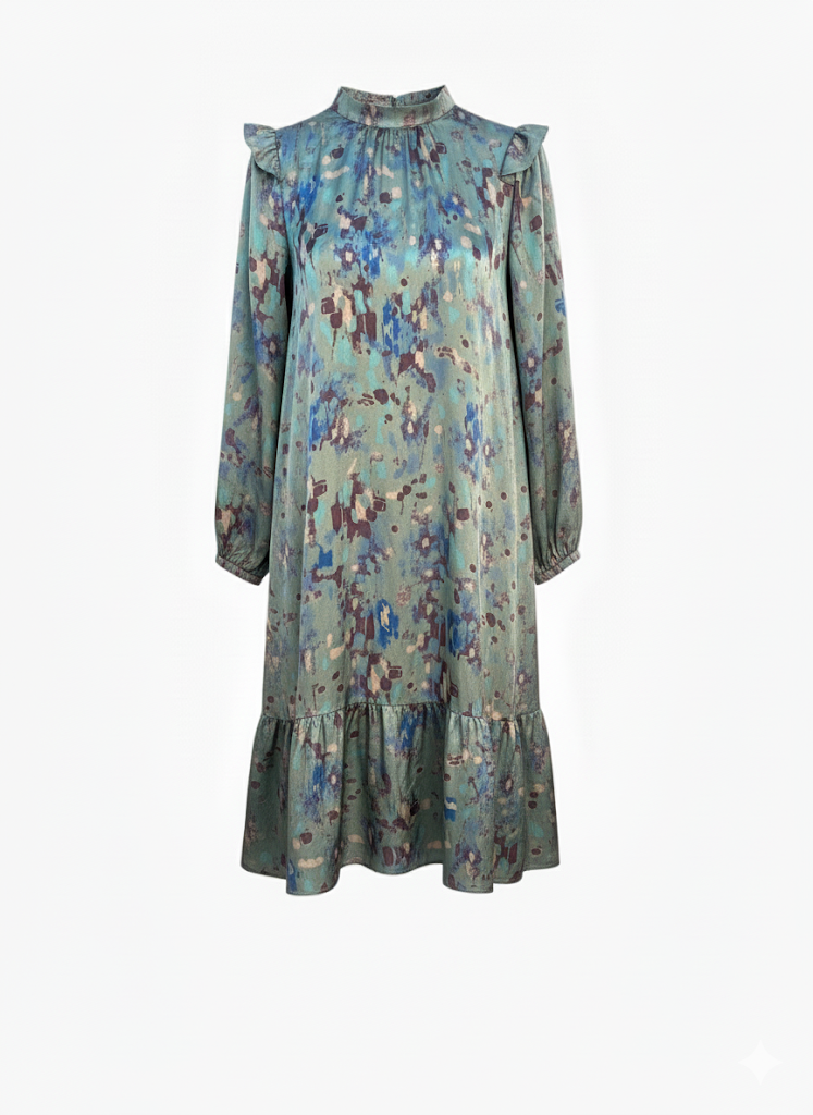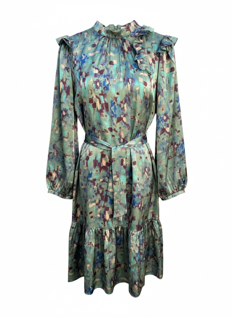 שמלת צבעי מים בצבעי מים ירוקים של טווין עם פירוט פרווה