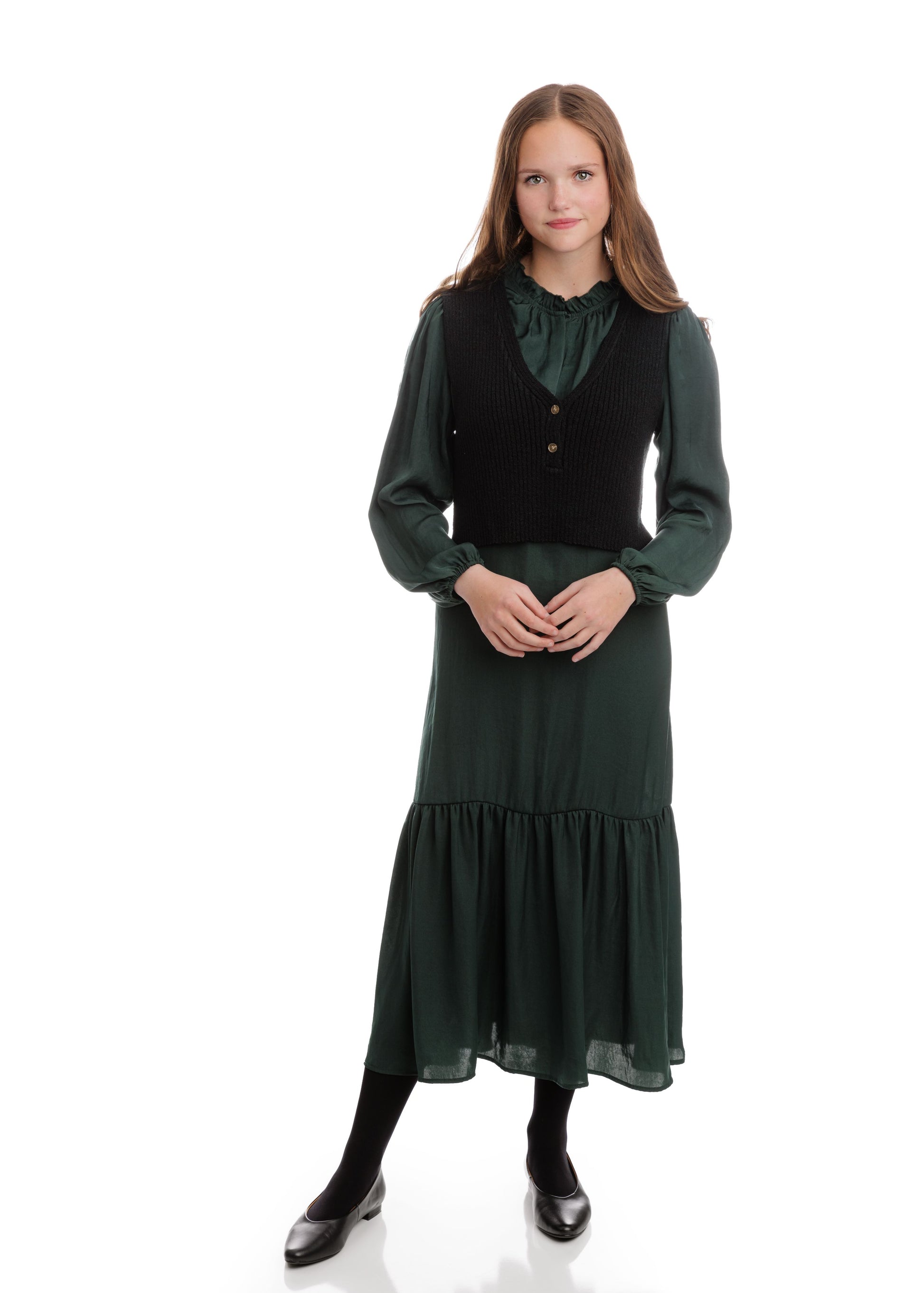 Ladies Green Full Slip Dress With Green Overlay Vest